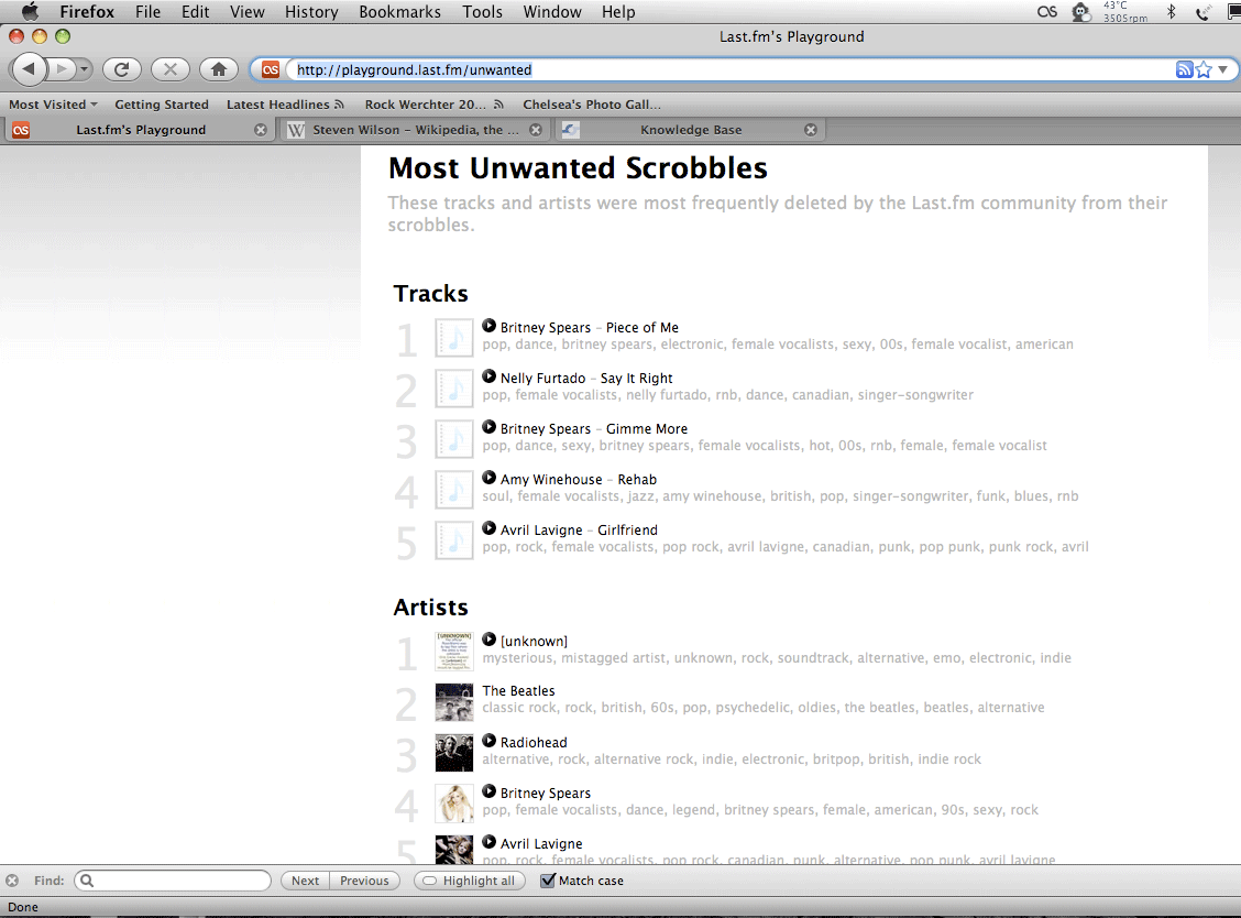 veci v Nezname Nieco z archivu February 28, 2013 dark Leave a comment Zoznam najmazanejsich zoscrobblovanych skladieb z last.fm , leto 2010;) ludia sa asi tymto moc chvalit nechceli….
